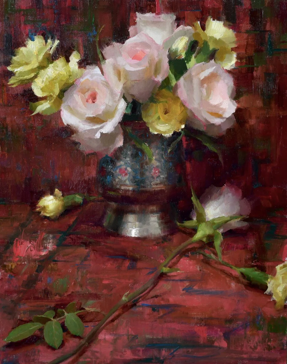 View fullsize Roses And CarnationsAshwini Bharathula14 x 11oil on linen panelFor Sale Inquire View All