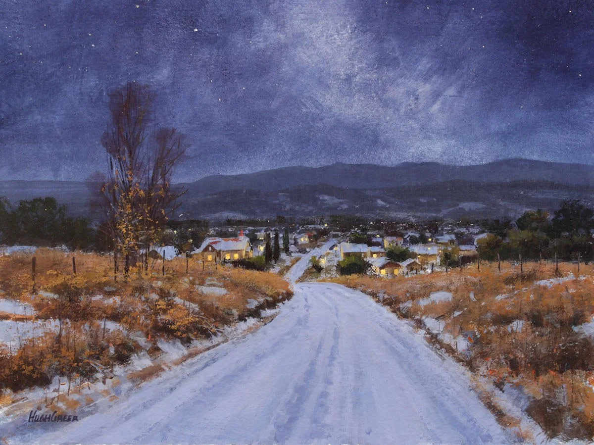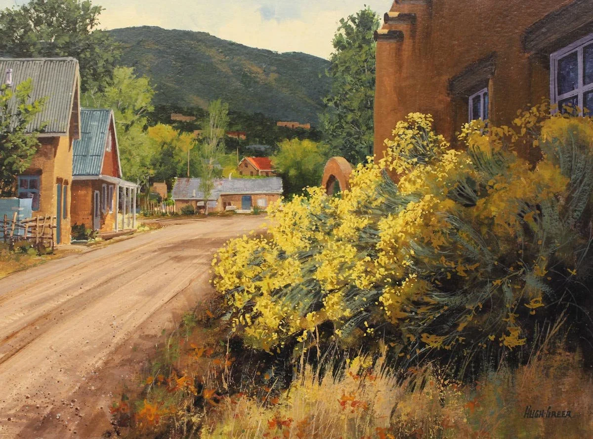 Born in Kansas City, Missouri, Hugh Greer later attended the University of Kansas graduating with a Bachelor of Fine Arts degree in Industrial Design. He moved to Wichita, Kansas to pursue a career in Industrial Design and Architectural Delineation before establishing himself as a fine arts painter. His love of dramatic weather and textural vistas highly influenced his decision to become a full-time landscape artist. Hugh paints in a style that is easy for people of all ages to relate to and appreciate. He has a keen eye for composition and color and his landscapes are both nostalgic in their purity and realistic in their execution. Greer's art captures illumination in all its forms: bright and glowing as the sun lights an evening sky through an atmospheric filter that emits a red-orange hue; thick and heavy on an overcast day; muted on a foggy morning, and glisteningly intensifying color after it rains. All of his works exhibit a profound reverence for the land Greer calls home. "I find Kansas beautiful, just like I find the Rocky Mountains beautiful and the high deserts of New Mexico and Arizona. I try to express my love for these different areas of the United States in my paintings."