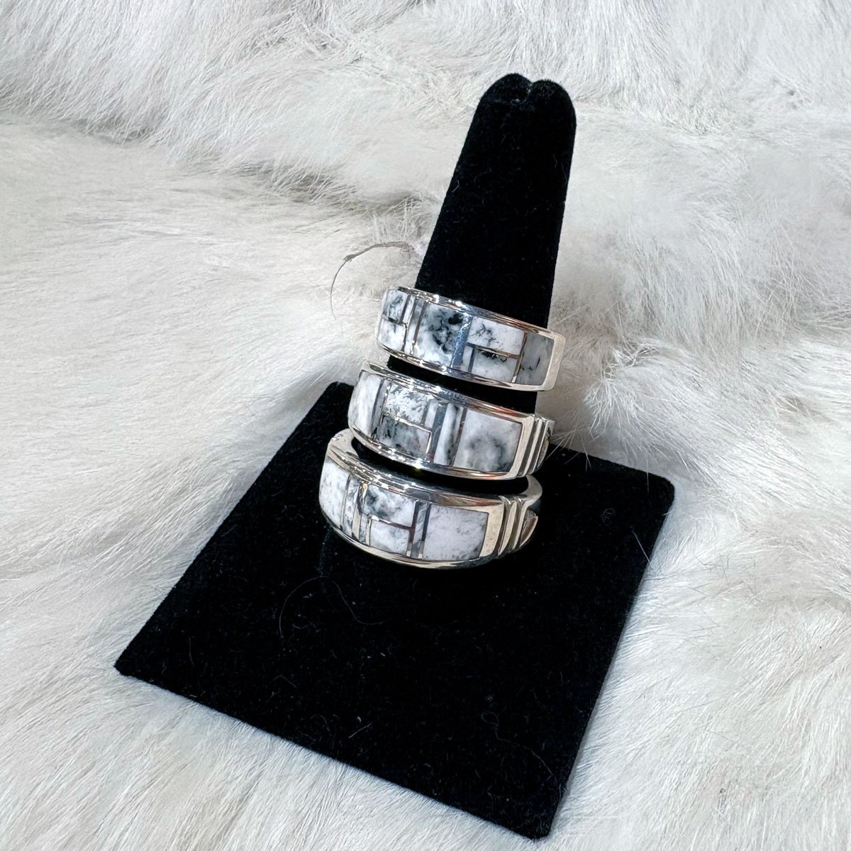 #4 White Buffalo Inlay Silver Rings