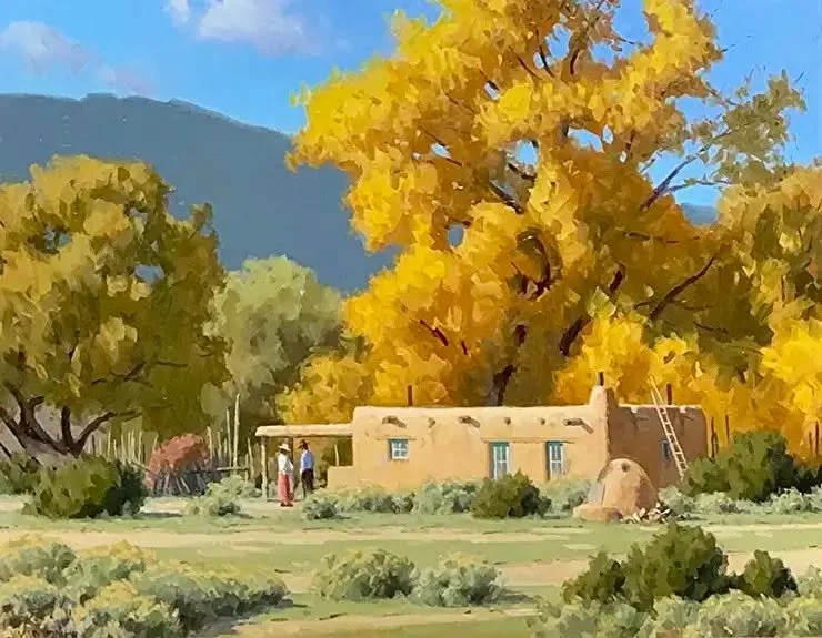Jimmy Dyer is a serious artist dedicated to communicating through his painting the beauty he sees in the life and landscape around him. His colorful light-filled images deal with timeless subjects from around the globe. Dyer seeks to combine the light, color, and painterliness of plein-air painting with the solid drawing and tonal accuracy of more academic styles of painting. After earning a Bachelor of Arts degree from the University of Dallas, Dyer moved to Santa Fe, New Mexico where he came under the influence of some of the finest painters in America including Tom Lovell and Wayne Wolfe. There he learned the importance of painting directly from life outdoors as the basis of landscape painting, a practice he still adheres to today. Finding the artistic camaraderie and abundant subject matter stimulating, he lived and painted in the area for five years, capturing on canvas, light charged landscapes of New Mexico, Colorado, Wyoming, and Arizona. Finding it necessary to travel in order to maintain inspiration, he has since lived in Jackson Hole, Wyoming; Boston, Massachusetts; and Eliot, Maine. Having painted in Europe, Canada, the Caribbean, and South America as well as subjects from the Pacific to the Atlantic in the States, Dyer feels that this constant challenge of new subjects stretches his abilities as an artist and allows him to return to his favorite subjects with new knowledge and a fresh eye. Those favorites include the people of the Ecuador, Peru, Mexico, and the Caribbean and the landscape of Vermont and Maine, New Mexico, and the Rocky Mountains. Dyer currently lives in Texas with his wife Amy. Working in oils, he spends as much time as possible painting from life. Dyer is a hard-working artist with one major goal: to become the very best painter he can be.