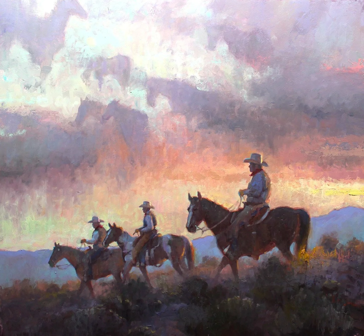 Rick’s paintings are inspired by the land he knows and loves, as well as his deep ranching roots. His style ranges from loose, impressionistic brushwork rich in color, to pieces that showcase fine detail and realism. This variety allows him to capture both the emotional atmosphere and the subtle truths of the Western experience. His journey as an artist began with an art scholarship, which led him to study Fine Art at the University of Utah. It was there he gained a broader appreciation for all forms of art. Over the years, Rick has also drawn inspiration from established Western artists, attending numerous workshops to refine his skills and techniques. Through dedicated practice and countless hours at the easel, Rick continues to experiment and grow as an oil painter. Rick’s goal is to create artwork that resonates with people—stirring memories, emotions, and a sense of connection to place and heritage. He currently lives in Utah with his wife and their four sons.